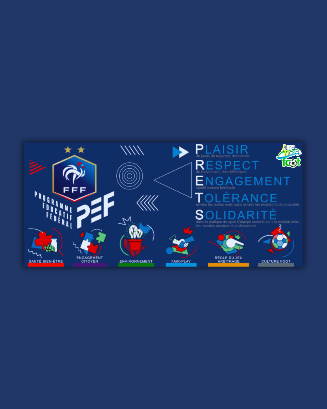 Le programme éducatif fédéral (PEF) est un outil pédagogique lancé par la FFF en 2014. 6 grands thèmes sont abordés :